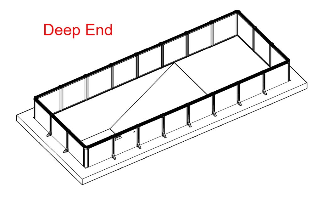 ONLY ON THE IN-GROUND VERSION OF THE ULTIMATE RADIANCE POOL IS WHERE YOU CAN ADD A DEEP END (HOPPER) LINER. AGAIN A FULL CONCRETE COLLAR IS REQUIRED AS STATED ABOVE AND POOL MUST BE FULLY BURIED ON ALL 4 SIDES, AND AGAIN FAILURE TO FOLLOW INSTALLATION INSTRUCTIONS COULD VOID THE MANUFACTURER’S WARRANTY. CALL 800 958 5088 TODAY