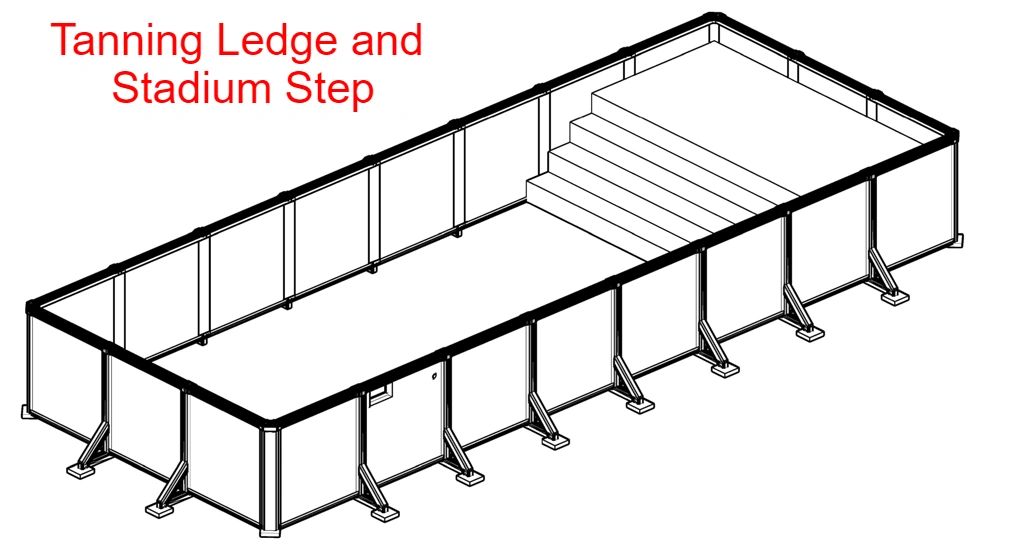 THE ULTIMATE RADIANCE POOL CAN BE BUILT ON THE GROUND, PARTIALLY IN THE GROUND OR FULLY INTO THE GROUND. THE ABOVE-GROUND VERSION WILL COME WITH PRESSURE PLATES AND STRAPS THAT WILL RUN UNDER THE POOL AND BRACING. THE BRACING DOES GET COUNTER SUNK INTO THE GROUND ABOUT 4 INCHES ON THE OUTSIDE OF THE POOL THE SEMI-INGROUND VERSION CAN BE INSTALLED UP TO 24 INCHES INTO THE GROUND. THIS VERSION CAN BE DIRECTLY BACKED FILLED AGAINST THE POOL. SUPER EZ INSTALL